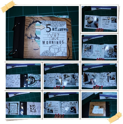 Para este taller, nos pidieron que llevásemos 5 fotos de cosas que nos gusta hacer en nuestro día a día. La temática de su álbum era cosa que le gusta hacer por la mañana. Para hacerlo, nos dieron un super kit que era una monería.