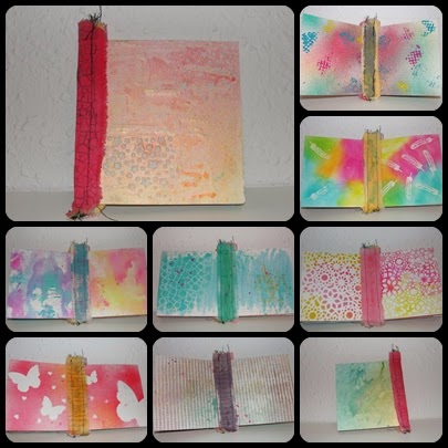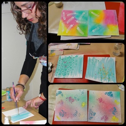 Asi que entre distress, acrilicas, sprays, stencils y sellos pasamos la mañana. Fueron 4 horas geniales y de mucho mucho guarreo!!! Y de mucha charla sobre scrap, blogs, anécdotas....