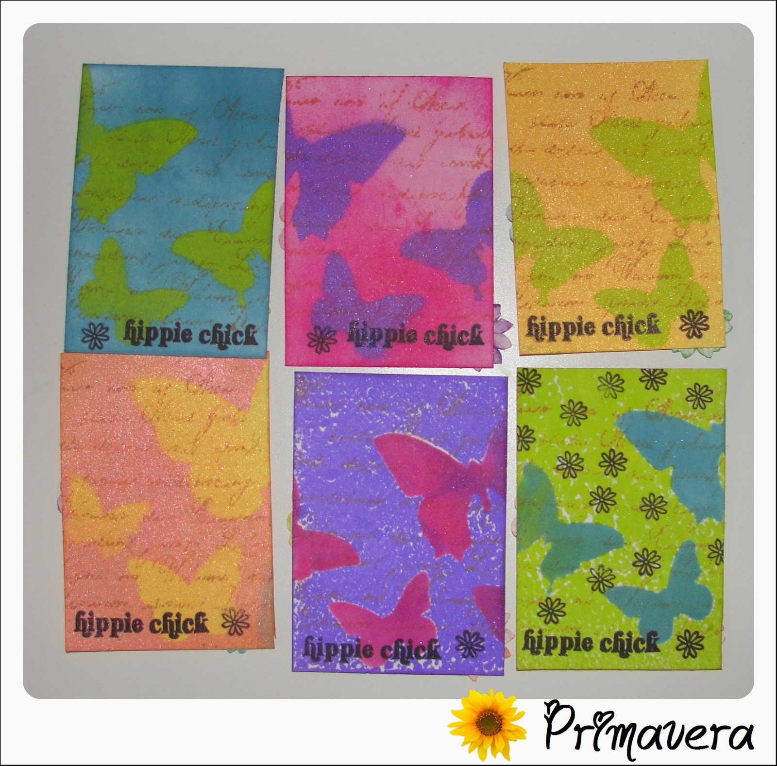 ResponderEliminarJajajaja son tarjetas de 6x9 que decoras todas iguales pero diferentes y le envías una a cada participante. Así se hace como una minicolección, en este caso es la colección Primavera.