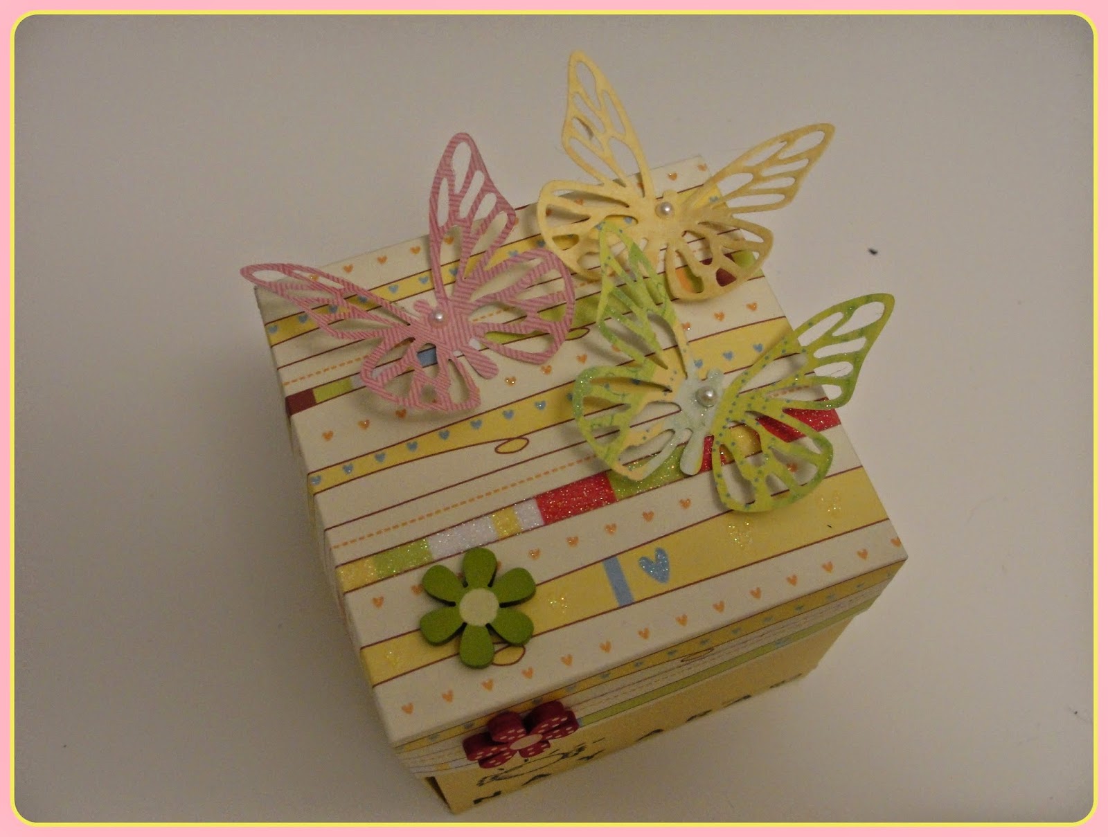 Nada de rosa y azul, nada de lo típico lleno de chupetes y pañales, Elena quería algo diferente, así que me decanté por el amarillo y el verde para hacer estas cajas.