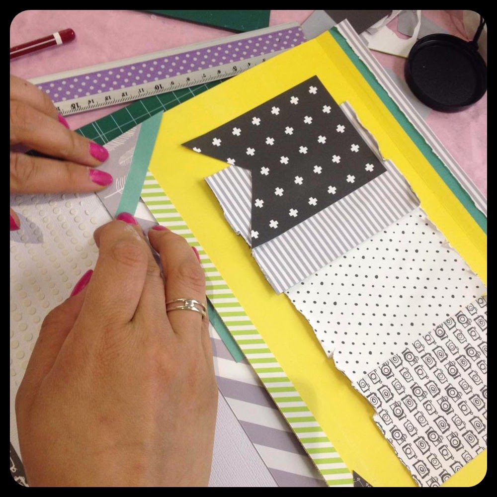Usamos acuarelas, pasta de modelar y papel mucho papel con el que hicimos un LO espectacular que incluía un mini dentro. Vamos completito completito.