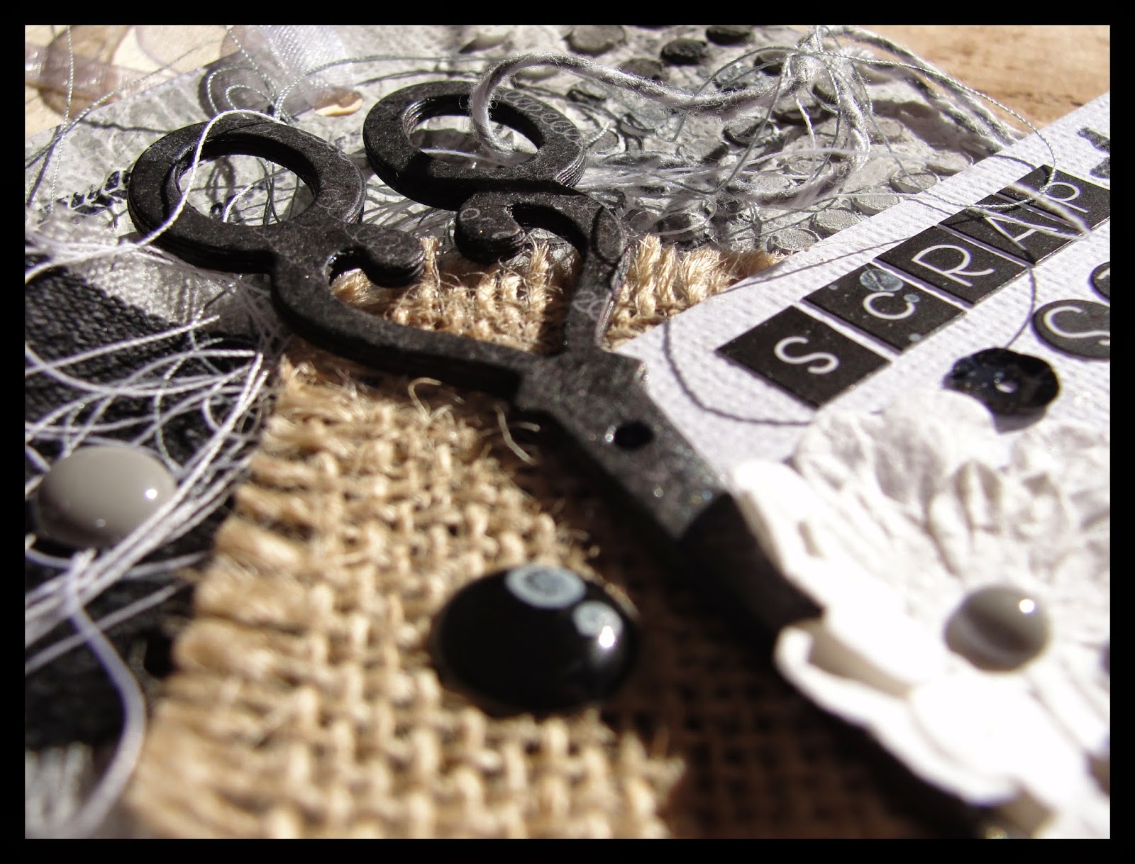 La organización organizó este evento para todas las scraperas que quisiéramos participar. Los requisitos eran hacer un tag de unas medidas determinadas, donde hubiese una tijera y el nombre de la autora en la parte delantera y que fuese en tonos grises. Así que sin dudarlo me puse manos a la obra.