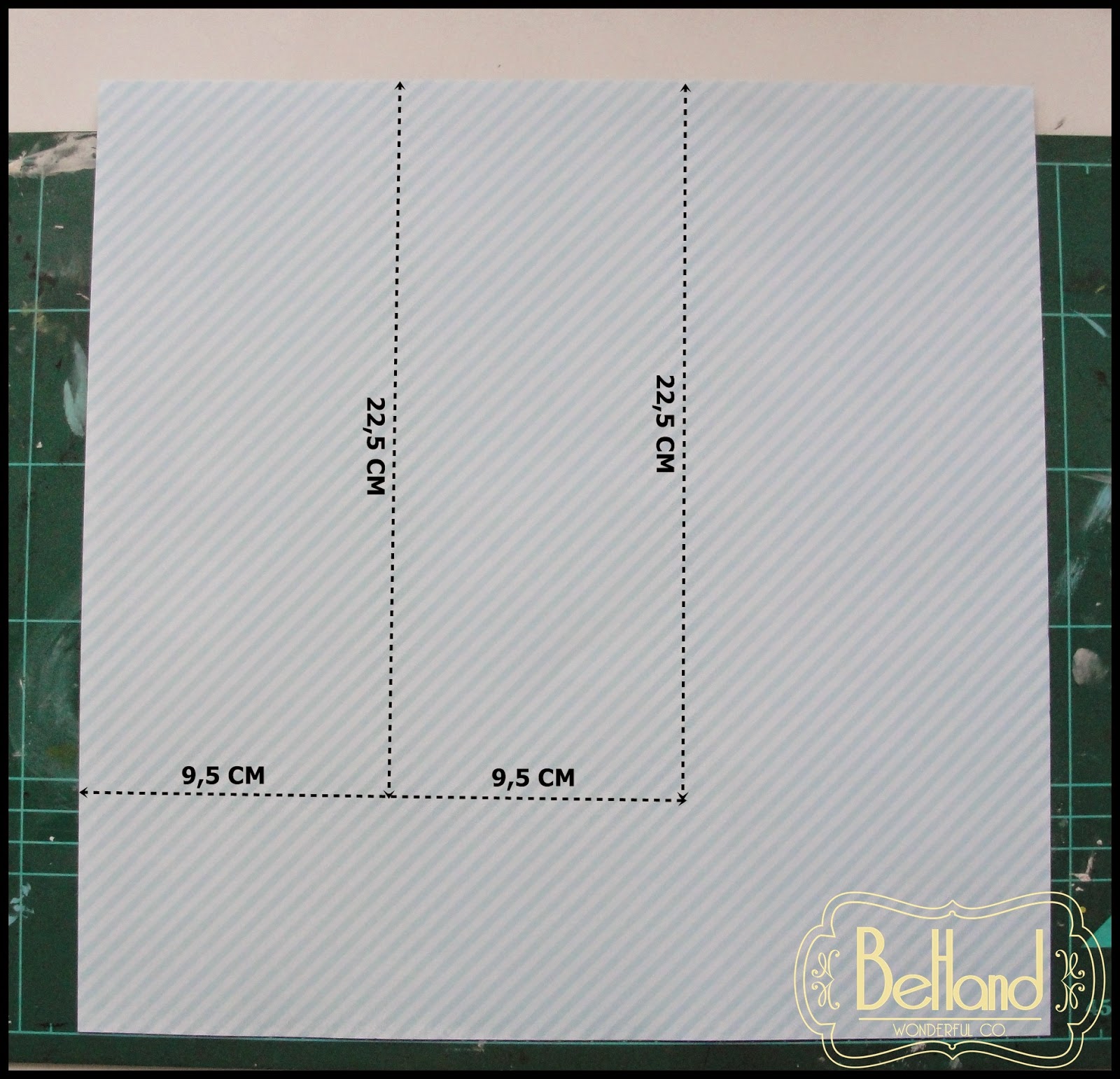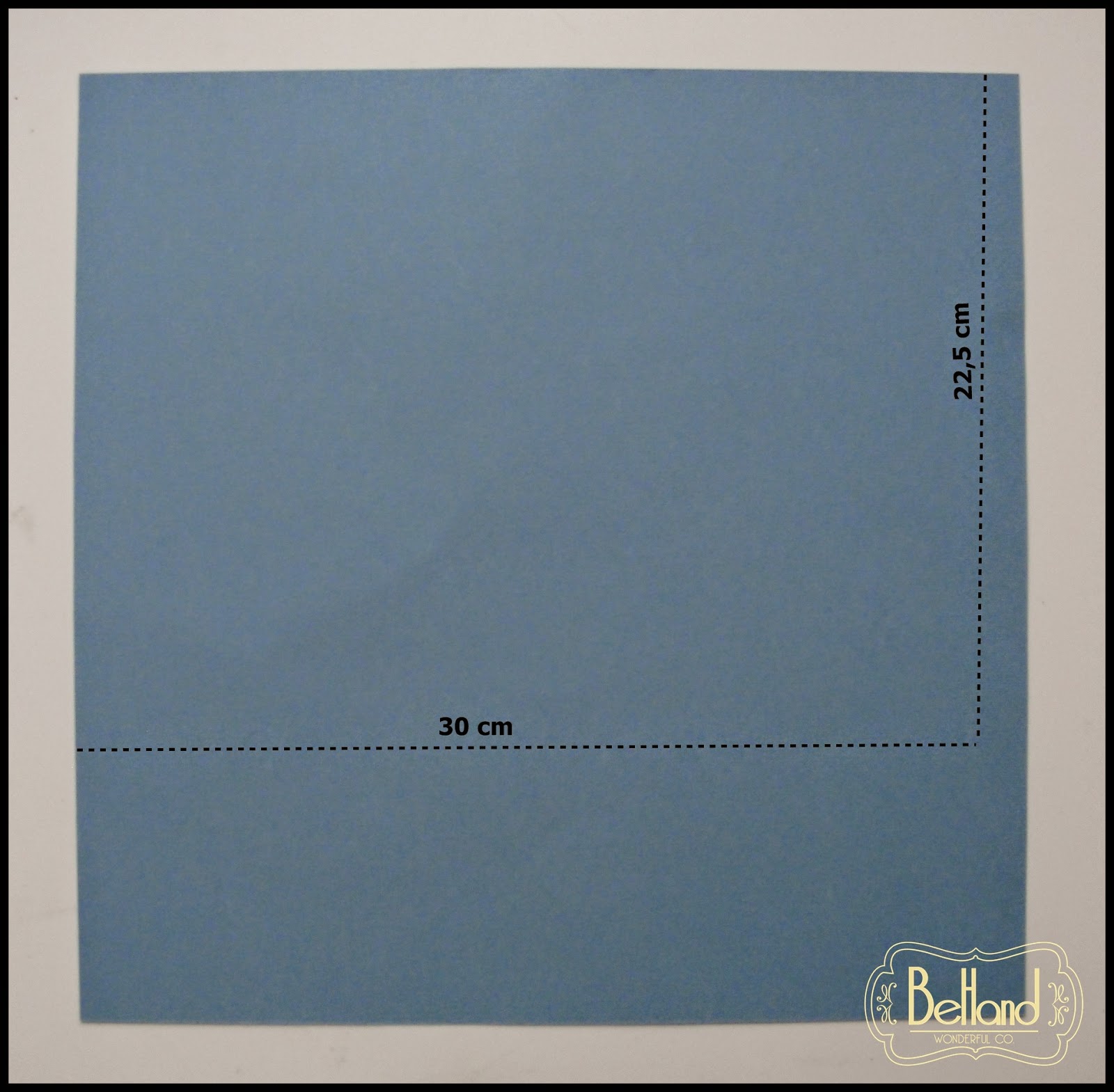 1- Cortamos el papel que vayamos a usar de base (en mi caso he elegido un papel basico azul) y lo cortamos a 30cmx22,5cm