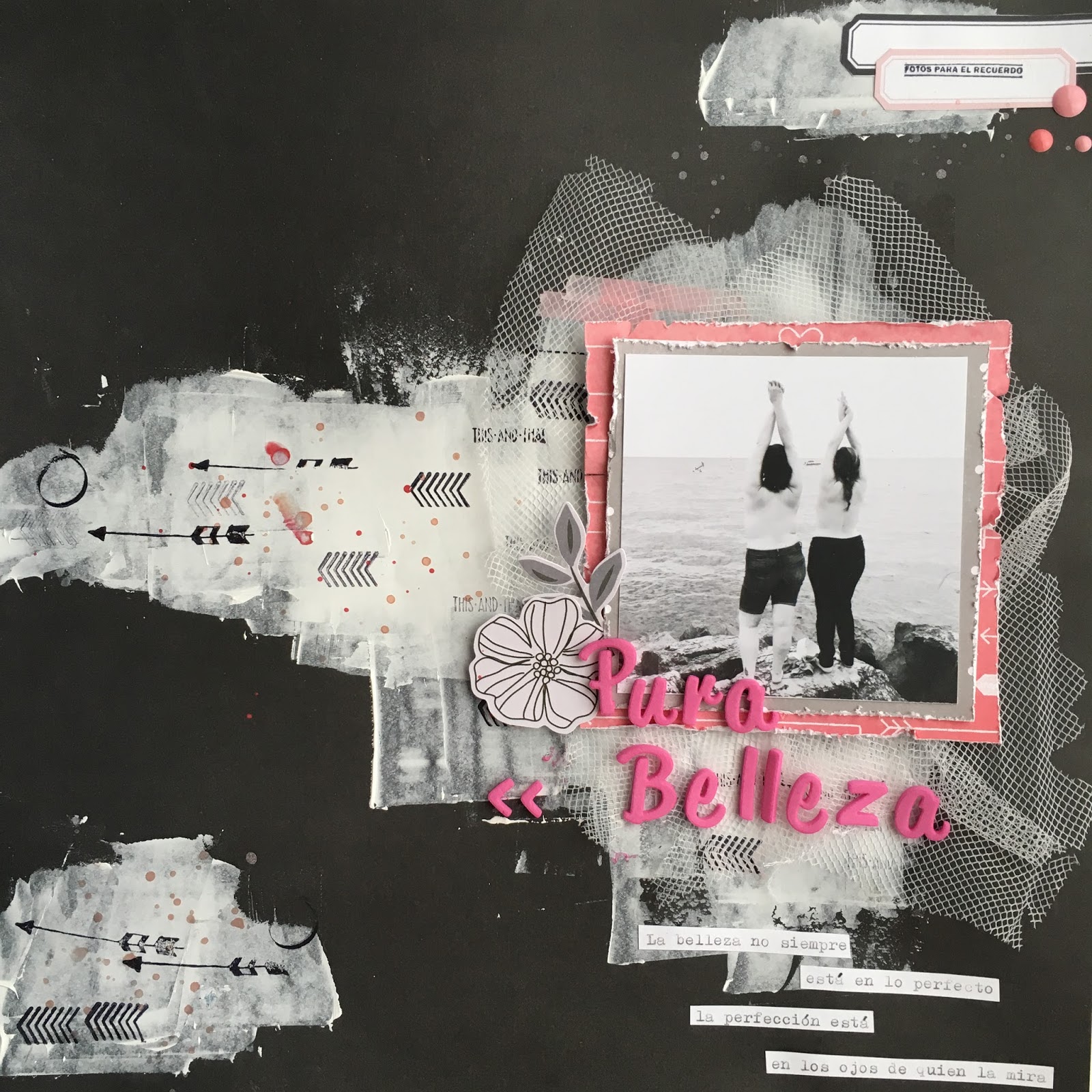 EliminarMuy original. Me encanta la combinación negro-rosa-blanco. Mucha suerte en el reto de Locas por el Scrap.